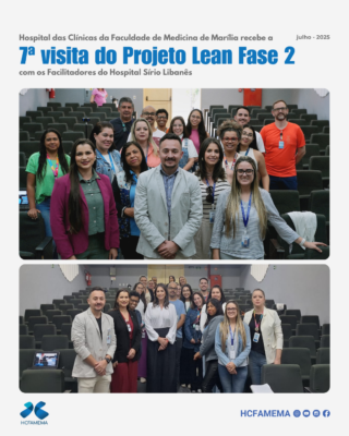 Nos dias 23 e 24 de julho, o HCFAMEMA recebeu os facilitadores do Hospital Sírio Libanês do Projeto Lean Fase 2, doutora Jhennyffer Boritza, médica cirurgiã geral, e o engenheiro de produção e especialista de processos, Wendell Guilherme do Prado, para a 7ª Visita referente ao projeto do Ministério da Saúde no hospital de Marília.