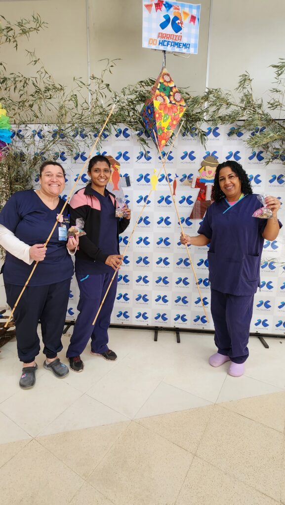 O HCFAMEMA organizou o Arraiá do hospital para os colaboradores aproveitarem comidas típicas deliciosas, música tradicional, pesca e muuuuuita alegria!