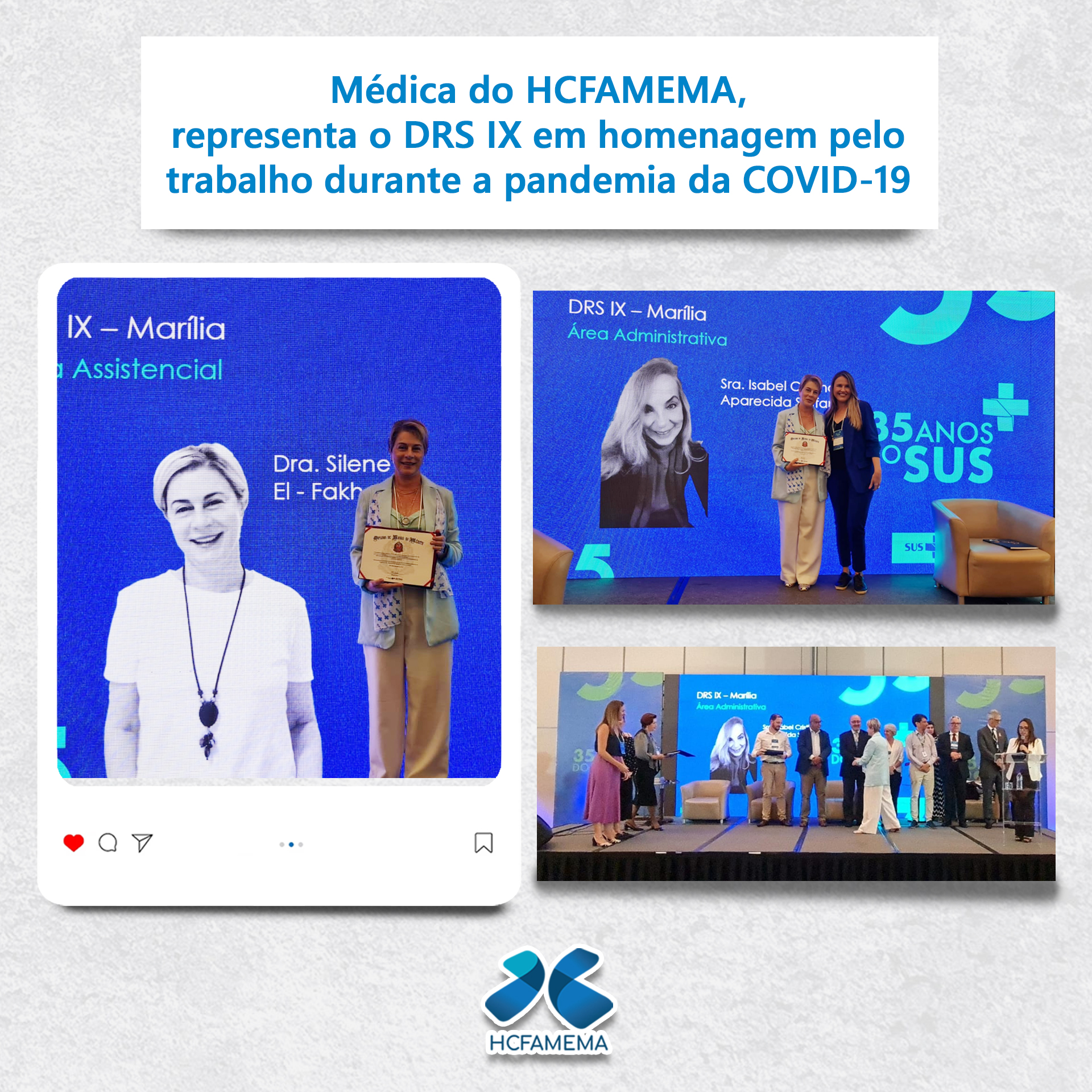 Reconhecimento e comemoração! Na tarde do dia 30 de outubro de 2023, durante o Seminário Internacional “35 anos do SUS-SP”, a Profa. Dra. Silene El Fakhouri, médica intensivista e coordenadora da UTI Adulto do HCFAMEMA, e Isabel Cristina Aparecida Stefano,…