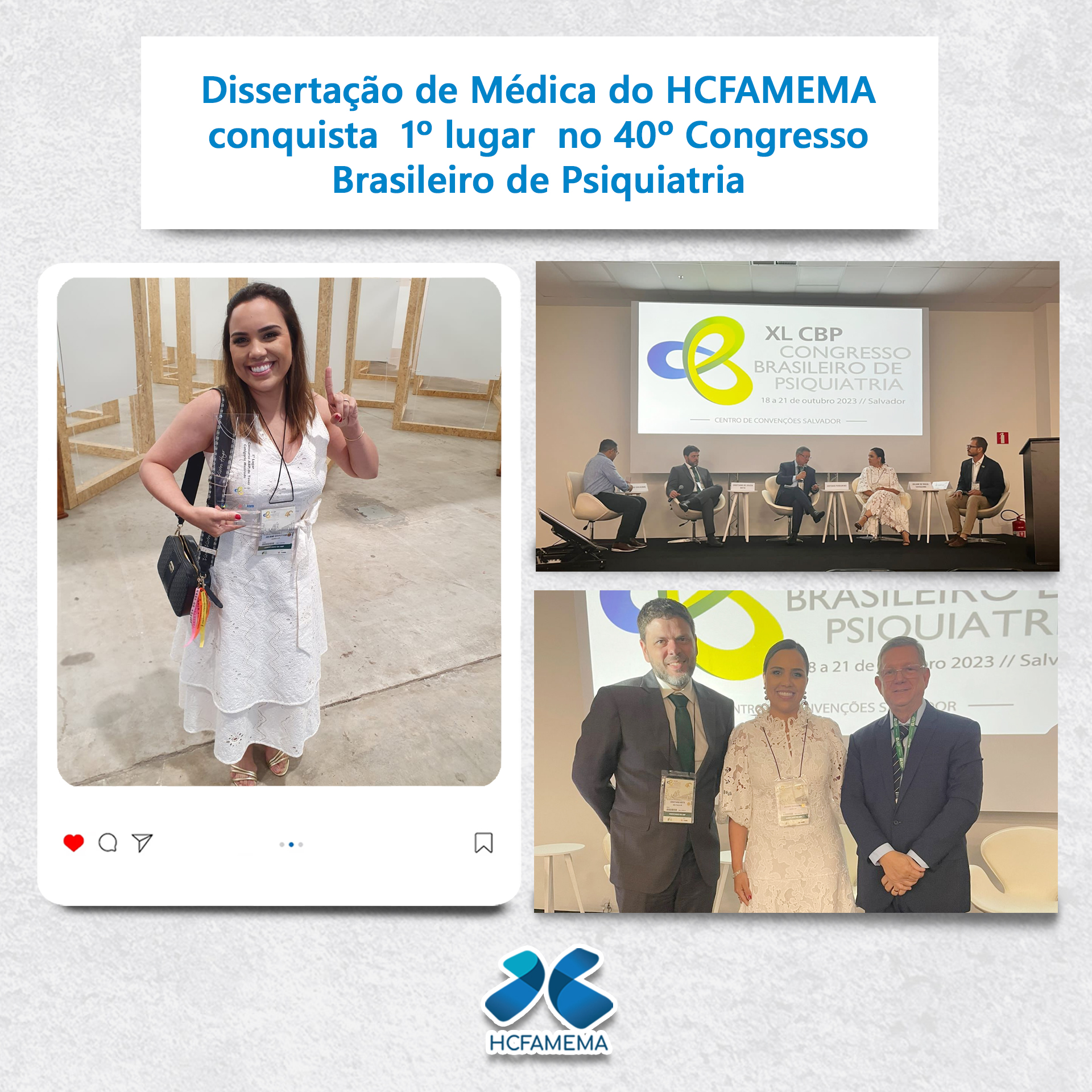 A Prof. Me. Juliane de Souza Cavazzana, médica psiquiatra do HCFAMEMA, recebeu o prêmio de 1º lugar da categoria Mestrado no 40º Congresso Brasileiro de Psiquiatria! O trabalho “Características e evolução dos pacientes com ideação ou tentativa de suicídio atendidos…