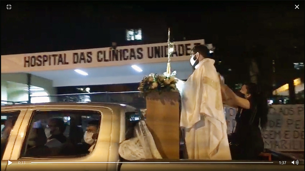 Uma carreata de Corpus Christi, substituindo as tradicionais procissões, por causa da pandemia da COVID-19, passou em frente ao Hospital das Clínicas da Faculdade de Medicina de Marília – HCFAMEMA, proferindo mensagens de solidariedade e fé a todos os pacientes…