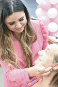 Voluntária da causa Outubro Rosa, Janaina apresentou dicas de automaquiagem