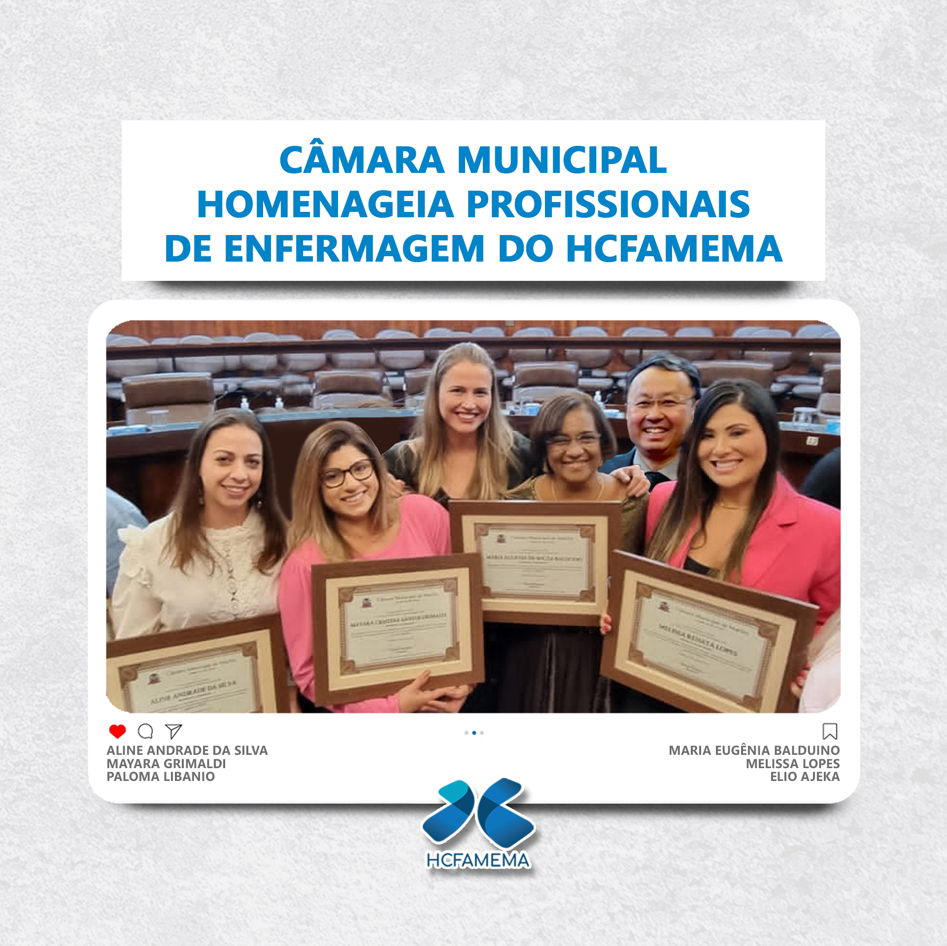 Câmara Municipal homenageia profissionais de enfermagem do HCFAMEMA