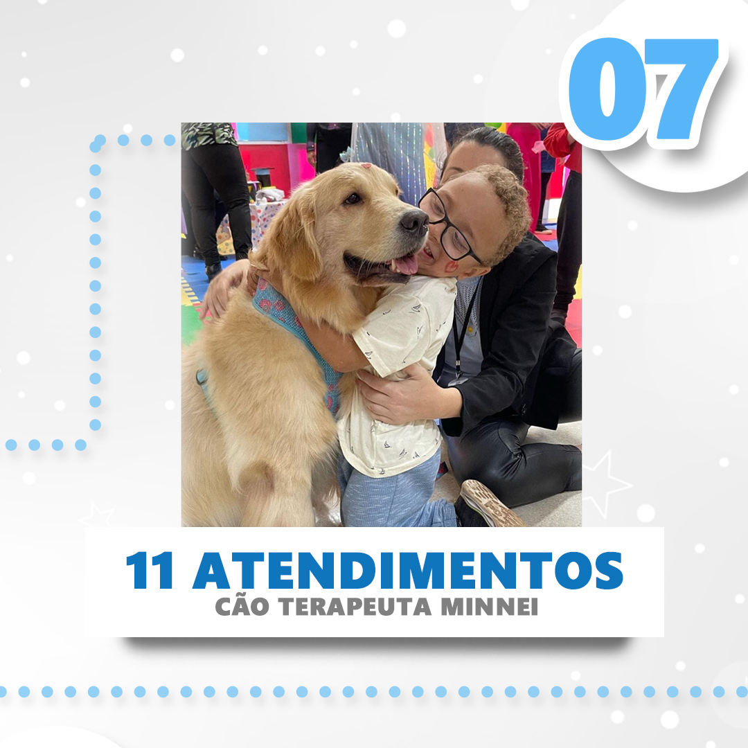 A mascote Minnei, do projeto “Cãoterapeuta”, também teve um ano movimentado. Conforme a tutora e responsável pelo projeto, Milena Diniz, Minnei esteve envolvida em onze visitas terapêuticas. Foram atendidos pelo projeto o HC Adulto, HC Materno Infantil, Hemocentro, Ambulatório e entidades assistenciais, como a Associação de Pais e Amigos dos Excepcionais (Apae-Marília). Além de levar momento de carinho e afetividade para os pacientes, Minnei também é muito comemorada entre os colaboradores.