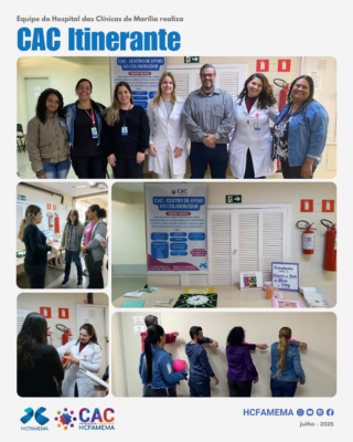 O Centro de Apoio ao Colaborador do HCFAMEMA realizou, no dia 25 de julho de 2025, o CAC Itinerante no Ambulatório de Atenção à Saúde da Mulher e CAPS AD (conhecido como NGA).