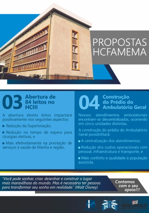 O Prof. Dr. José Augusto Sgarbi, Vice-Diretor da Famema, enfatizou a Instituição no âmbito de ensino e de pesquisa, e mencionou que a Famema, com 53 anos de existência, não tem prédios próprios. “Uma das principais propostas da Famema é a construção do seu campus universitário. Estamos mostrando os nossos pontos fortes e admitindo nossas fragilidades. Estamos dialogando com a comunidade e com as lideranças políticas. Por isso o encontro é para fortalecer nossa parceria com os municípios”.