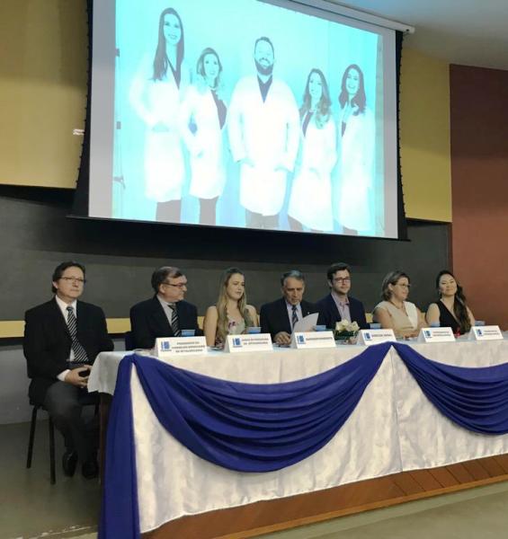 A solenidade ocorreu no Auditório Dr. Mário Alberto Cosentino. A mesa solene foi formada por: Prof. Dr. Valdeir Fagundes de Queiroz – Diretor Geral da Famema; Profa. Ms. Paloma Aparecida Libanio Nunes – Superintendente da Autarquia HCFAMEMA; Prof. Dr. Flávio Trentin Troncoso – Coordenador do Programa de Residência Médica da Famema; Prof. Dr. José Augusto Alves Ottaiano – Presidente do Conselho Brasileiro de Oftalmologia e Diretor do Banco de Olhos da Famema; Prof. Dr. Fábio Triglia Pinto – Chefe do Departamento da Oftalmologia da Famema; Professora Dra. Simone Ribeiro Araújo de Almeida – Coordenadora do Programa de Residência Médica em Oftalmologia da Famema e Profa. Dra. Aline Satie Seino Toma – Chefe da Disciplina de Catarata da Famema.