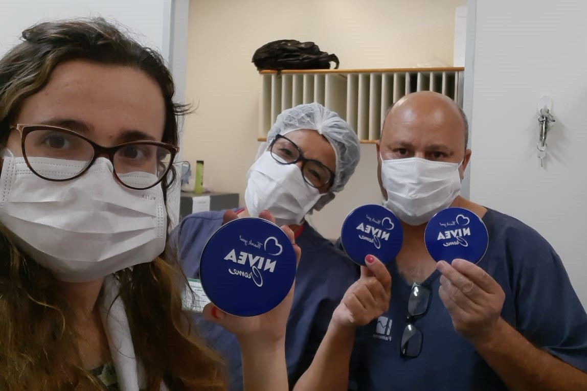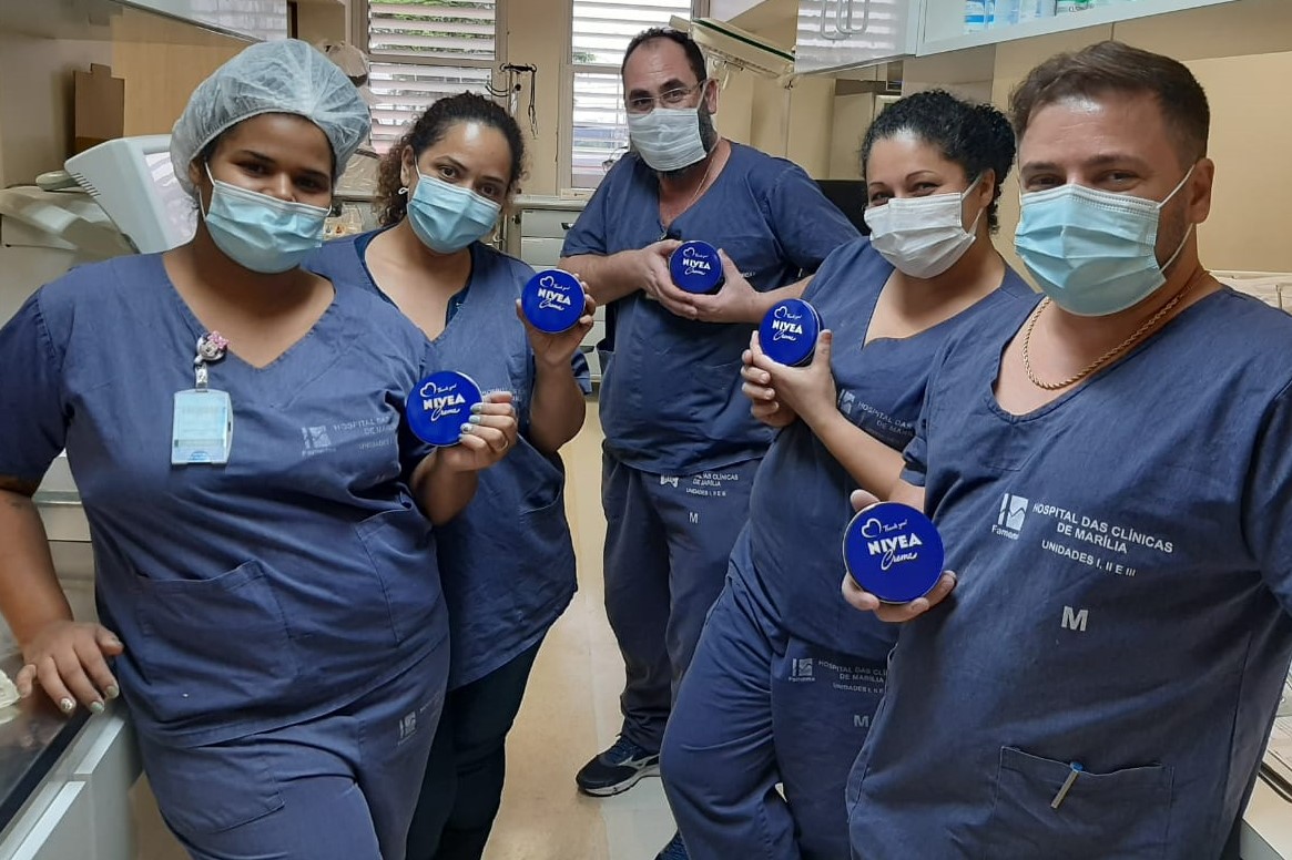 A Gerência de Engenharia de Segurança e Medicina do Trabalho (GESMT) do Hospital das Clínicas da Faculdade de Medicina de Marília (HCFAMEMA), em parceria com o Departamento de Infraestrutura e Logística (DIL), estão distribuindo para os funcionários o Creme Hidratante Nivea, conhecido por sua tradicional embalagem em lata azul de 56g. O produto foi doado pela própria fabricante como forma de presentear médicos, enfermeiros e todos os profissionais que estão direta ou indiretamente se dedicando ao enfrentamento da pandemia da COVID-19.