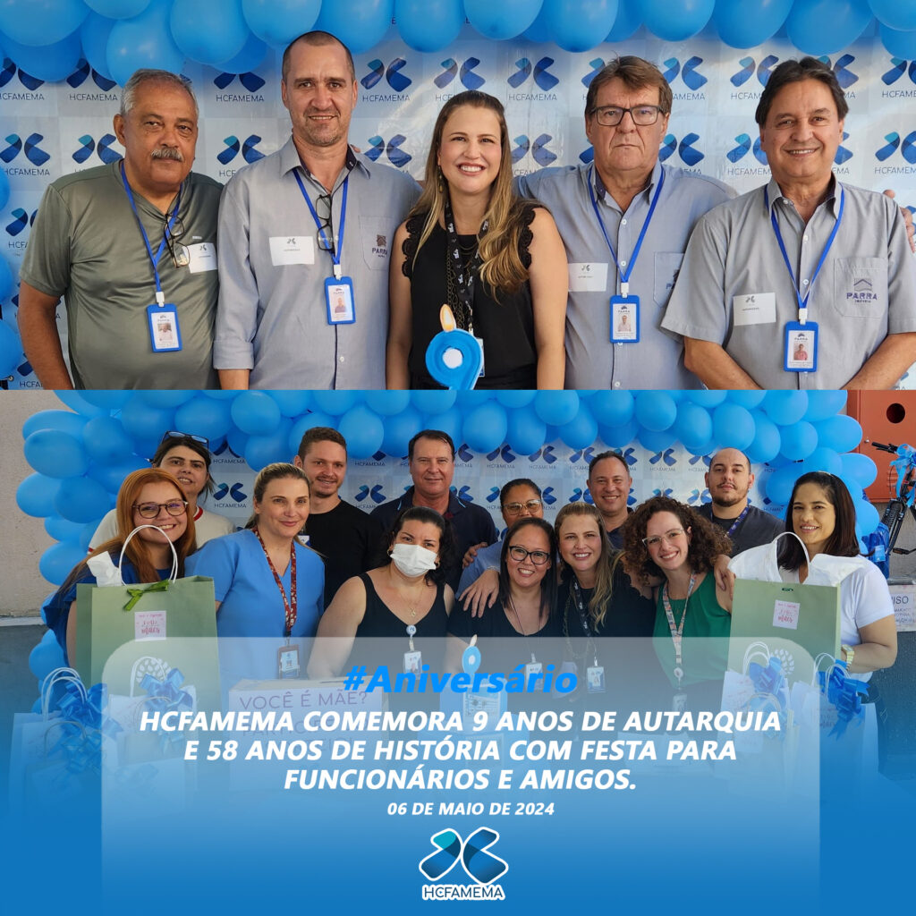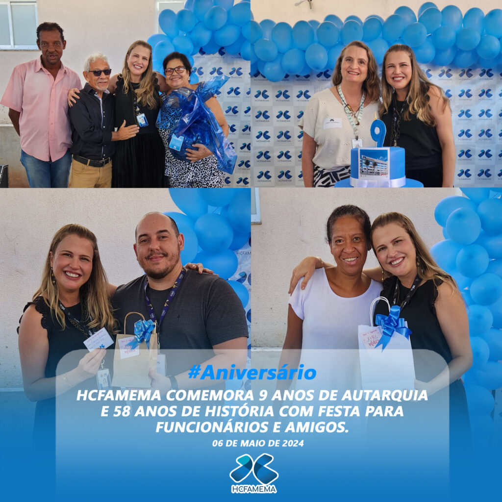 Hoje, 06 de maio de 2024, foram comemorados os nove anos de autarquia HCFAMEMA e 58 de uma trajetória com desafios e conquistas, e nada mais justo do que celebrar com uma festa para os colaboradores e amigos!