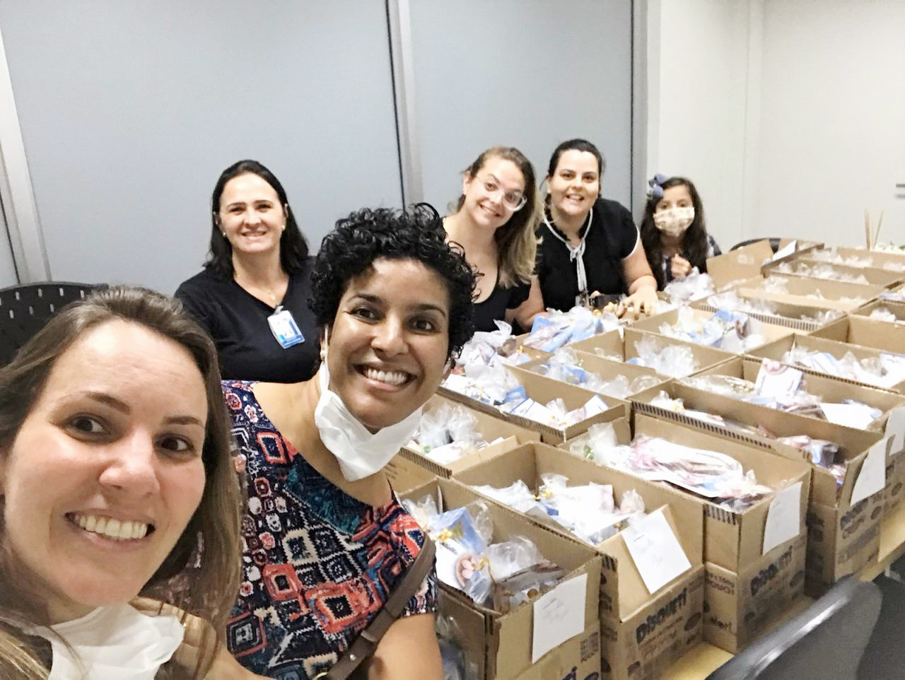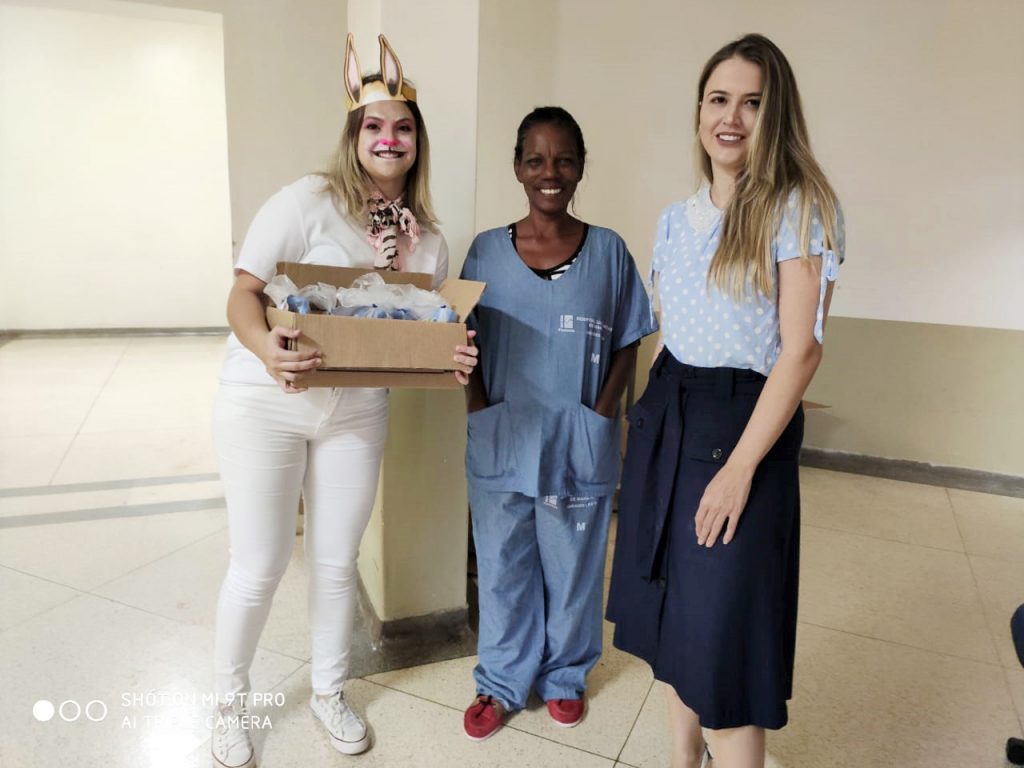 Alguns funcionários se reuniram e preparam kits de doces para presentear, mesmo que simbolicamente, os profissionais que no Domingo de Páscoa estavam trabalhando e num momento tão difícil que o mundo está vivendo. A entrega contou com a participação da Superintendente do HCFAMEMA, Dra. Paloma Libanio.