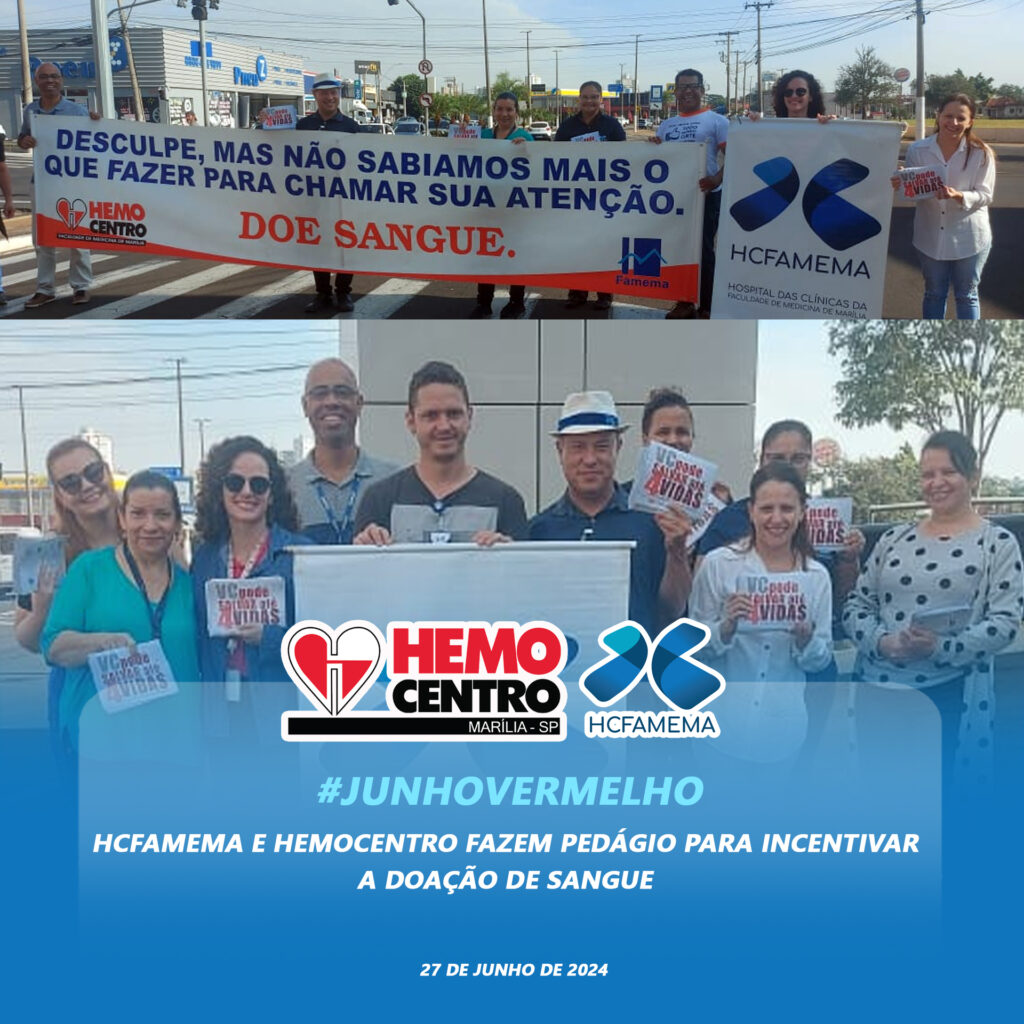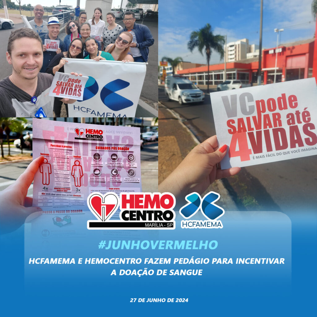 O HCFAMEMA e o Hemocentro realizaram, na manhã desta quinta-feira, 27 de junho de 2024, um pedágio em comemoração ao Junho Vermelho, mês do doador de sangue.