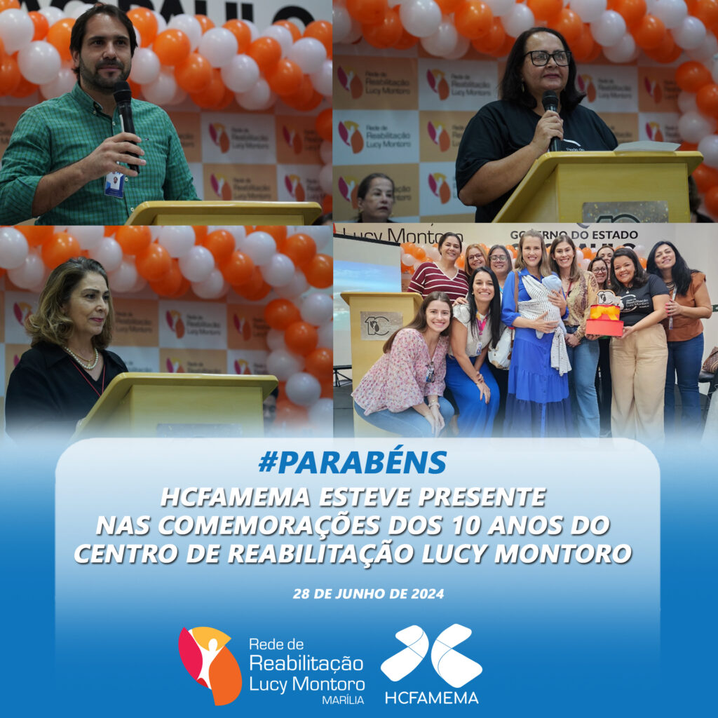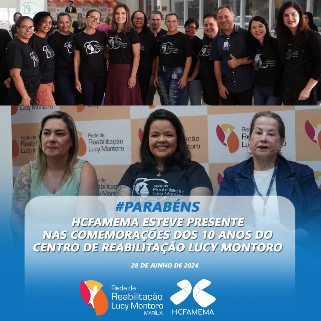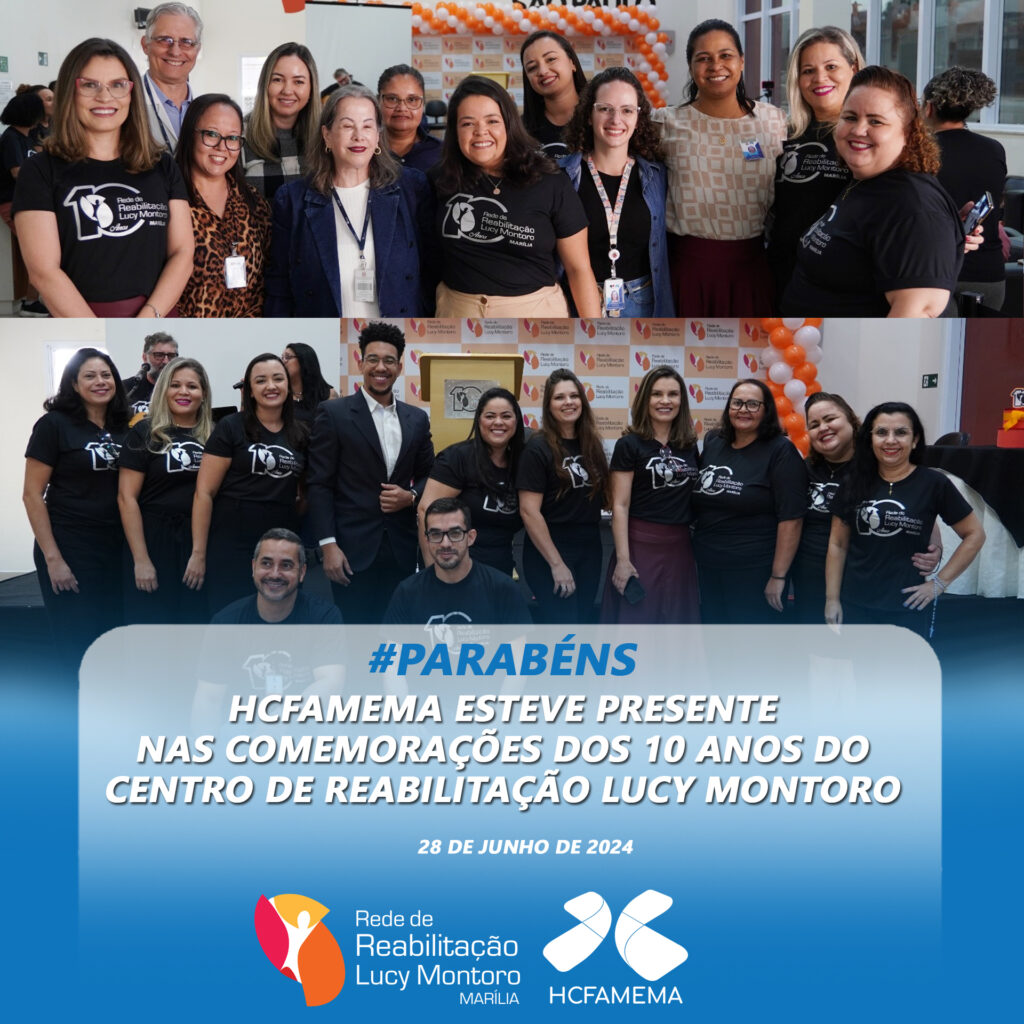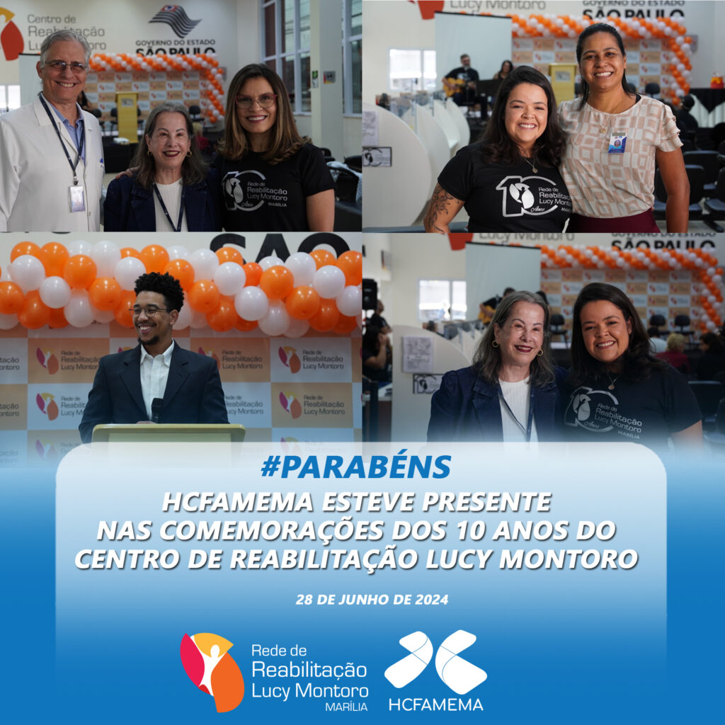 Parabenizamos a todos pelos 10 anos de existência dessa importante Instituição em Marília e agradecemos a parceria de sucesso entre o Centro de Reabilitação Lucy Montoro e o HCFAMEMA!