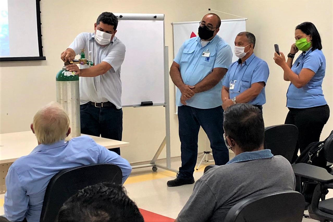 Os gases medicinais são usados para fins terapêuticos, sendo inestimáveis nas diversas áreas da medicina. Como os medicamentos, eles são utilizados com o objetivo, por exemplo, de ventilar, oxigenar ou até mesmo anestesiar a dor de um paciente. “Os profissionais da Zeladoria são responsáveis pela troca, quando necessária, dos cilindros de gases hospitalares. Por isso precisam saber manusear e identificar adequadamente para se fazer a reposição sem riscos de erro ou de acidentes de trabalho, pois os cilindros são pesados e podem provocar lesões ou esmagaduras se não forem manipulados adequadamente”, declarou o diretor do Departamento de Infraestrutura e Logística, Márcio Freitas. A elaboração da capacitação envolveu também o chefe do Núcleo de Zeladoria, Marcos Correia da Silva.
