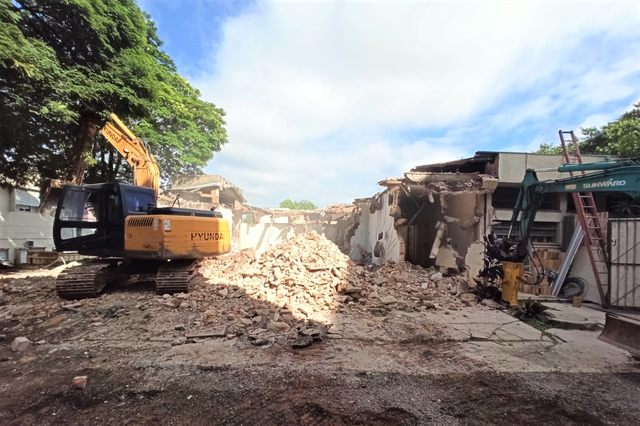 Segundo o engenheiro civil do HCFAMEMA, Bruno Barbarotto Gusson, a fase de demolição está adiantada: “A obra de demolição teve início no dia 1 de março e está prevista para ocorrer no prazo de 30 dias, sendo que a primeira etapa é a de remoção da edificação existente e a segunda etapa será a readequação da parcela do imóvel a conservar. Nesta segunda-feira, já iniciamos a readequação da edificação conservada, portanto, acredito que a obra será concluída antes do prazo. Sendo assim, nós do DIL – Departamento de Infra e Logística – estamos otimistas para a liberação da área cedida ao convênio antes do previsto, para que a empresa Varian Medical Systems, possa iniciar a elaboração do projeto executivo e, posteriormente, a construção do novo bunker”, explicou ele.