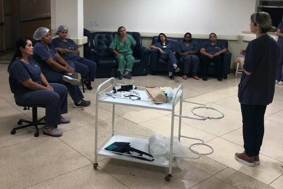Os profissionais recebem treinamento presencial ou por videoconferência, com instruções sobre novos procedimentos, novos protocolos, fluxos de trabalho e uso correto de Equipamentos de Proteção Individual (EPIs), além das ferramentas on line e de comunicação visual interna.