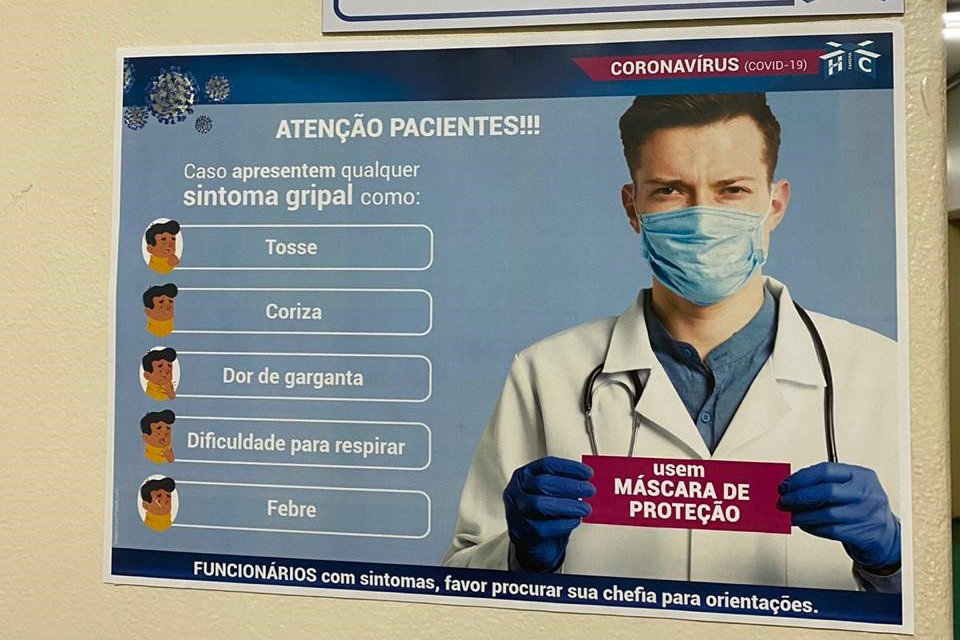 Foram fixados cartazes informativos nos locais de atendimento com o intuito de dar visibilidade e facilitar o acesso às informações necessárias relacionadas à COVID-19, garantindo assim maior uniformidade das condutas.