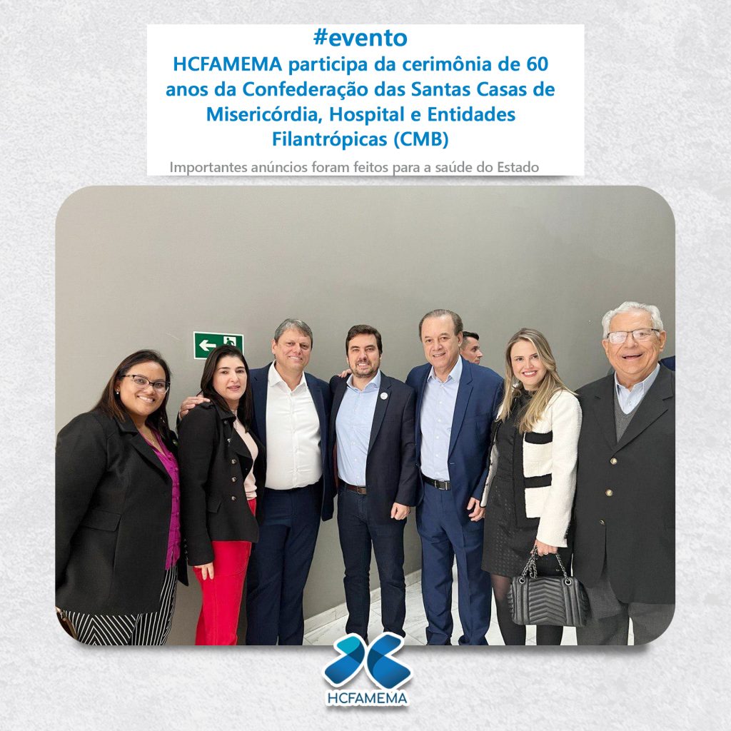 No dia 28 de agosto de 2023, o HCFAMEMA esteve presente na cerimônia de 60 anos da Confederação das Santas Casas de Misericórdia, Hospital e Entidades Filantrópicas (CMB), representado pela Superintendente do hospital, doutora Paloma Aparecida Libanio Nunes.