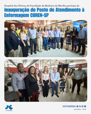 Representantes da equipe de enfermagem do HCFAMEMA estiveram presentes na inauguração do novo Posto de Atendimento à Enfermagem Descentralizado do Conselho Regional de Enfermagem (COREN-SP), que ocorreu na segunda-feira, 22 de setembro de 2025.