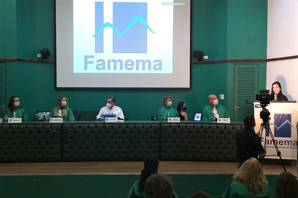 A Superintendente do HCFAMEMA, Dra. Paloma Aparecida Libanio Nunes, foi uma das convidadas da mesa solene formada para a sessão de colação de grau da 37ª turma do curso de Enfermagem da Faculdade de Medicina de Marília (Famema), ocorrida na segunda-feira, dia 08 de fevereiro. A solenidade ocorreu nos salões e auditório da Associação Paulista de Medicina com a finalidade de colar grau dos 30 formandos da Turma “Prof. Dr Márcio Mielo”.