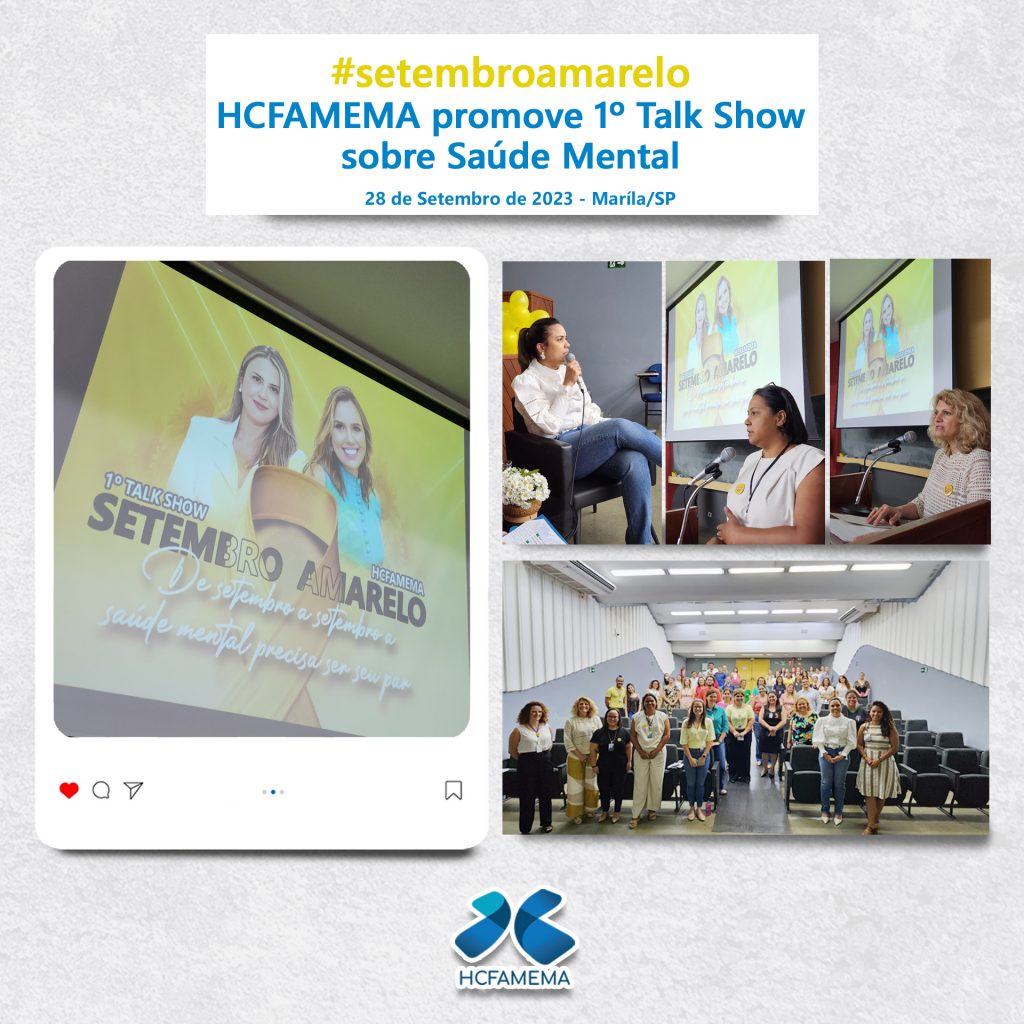 No dia 28 de setembro de 2023, aconteceu o 1º Talk Show sobre Setembro Amarelo, promovido pelo Centro de Apoio ao Colaborador (CAC) do HCFAMEMA. O evento teve como tema “De setembro a setembro, a saúde mental precisa ser seu par” e falou da importância de cuidarmos da nossa saúde mental.