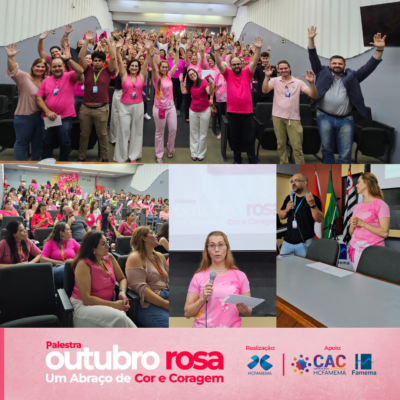 Sabendo da importância da informação e da educação continuada em saúde, o HCFAMEMA realizou, no dia 25 de outubro de 2024, a palestra “Outubro Rosa – Um abraço de cor e coragem”, com apoio do Centro de Apoio ao Colaborador (CAC), Núcleo de Ingresso e FAMEMA.
