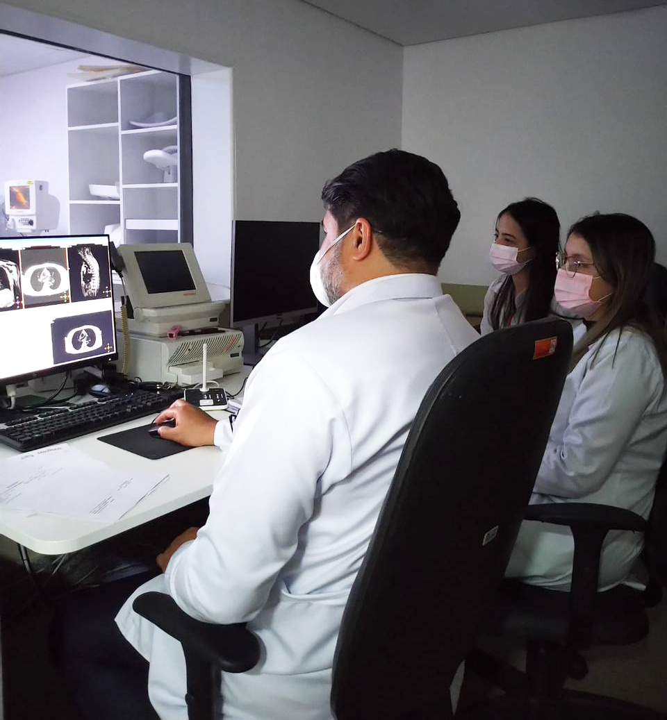 Participaram do treinamento médicos radiologistas, residentes da radiologia, biomédicos, enfermeiro e técnicos de enfermagem.