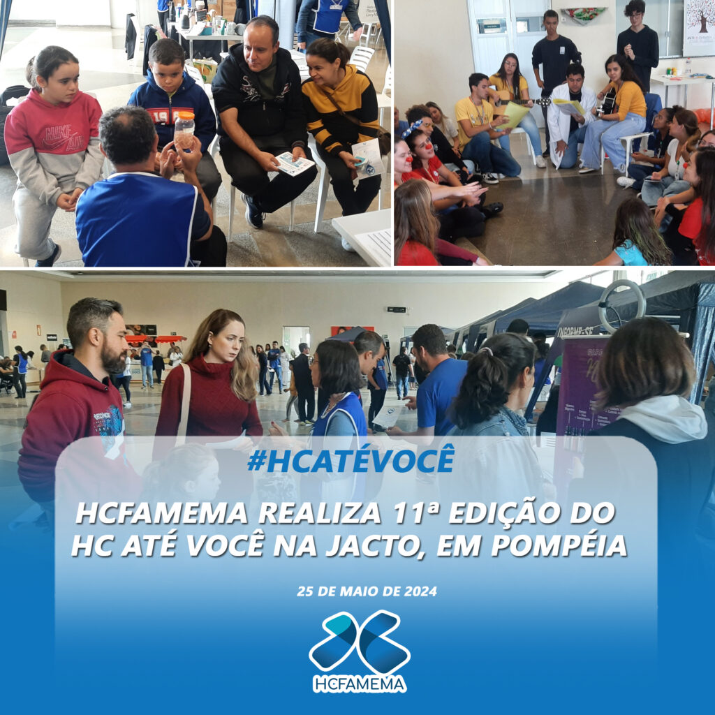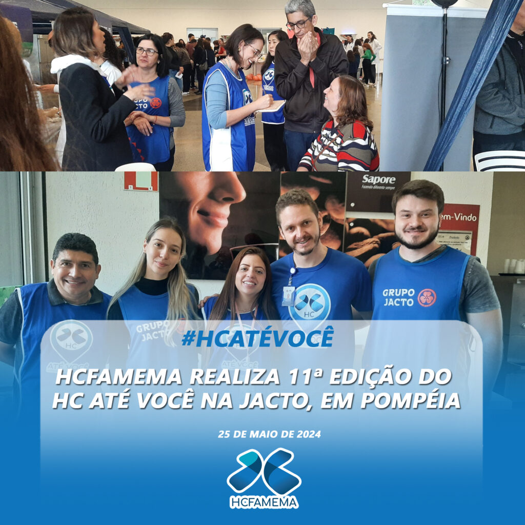 O HCFAMEMA participou do evento do Dia da Família do Programa Saúde Integral do Grupo Jacto, em Pompéia, realizando a 11ª ação do programa HC Até Você! O evento aconteceu na Associação dos Colaboradores do Grupo Jacto, sábado, 25 de maio de 2024.