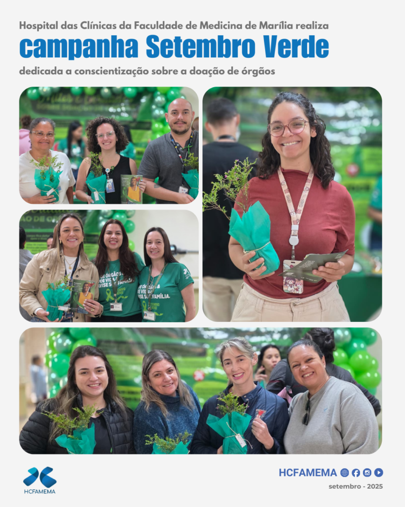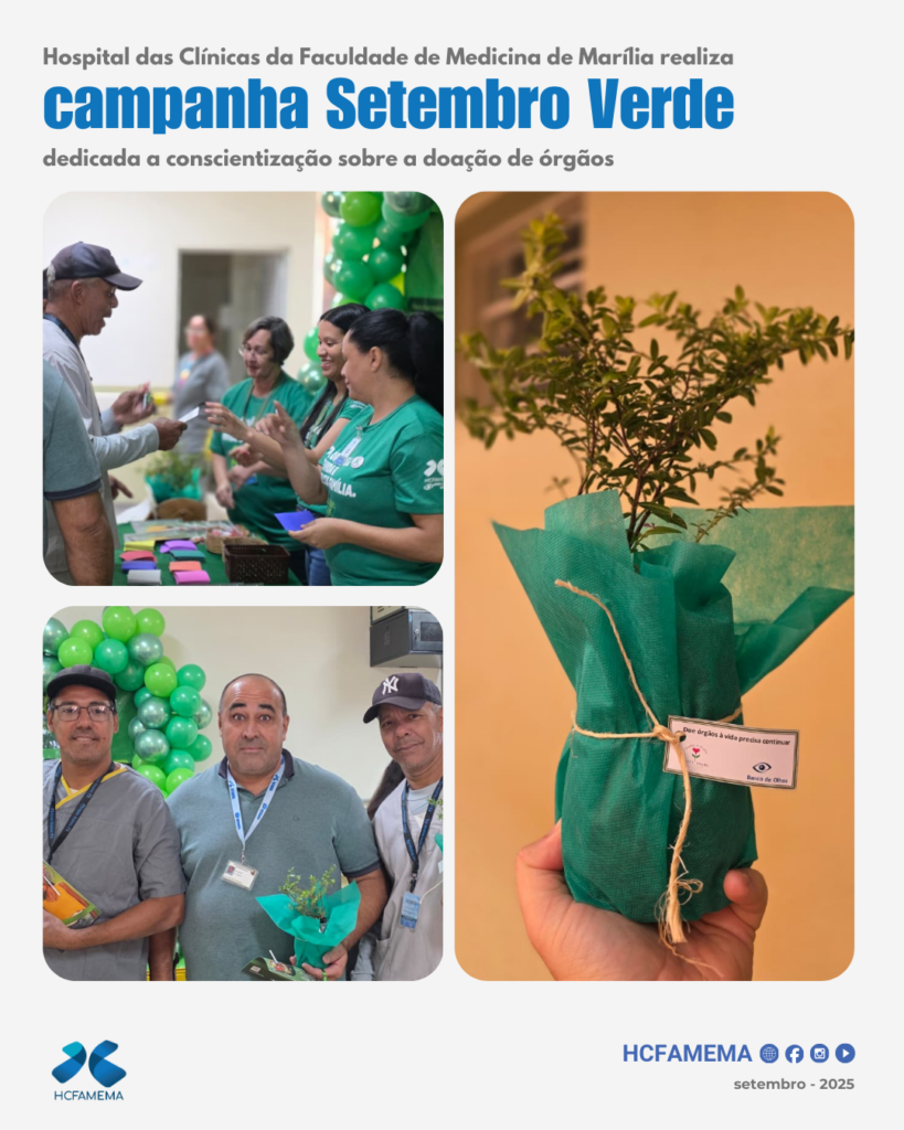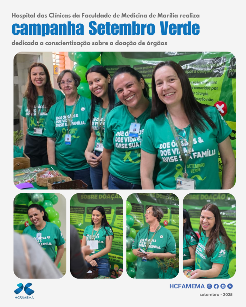 A Organização de Procura de Órgãos (OPO) do HCFAMEMA realizou um Pedágio em Prol da Doação de Órgãos, no saguão de entrada do Departamento de Atenção à Saúde e Alta Complexidade. Ocorrido no dia 26, a ação faz parte da campanha Setembro Verde. O público-alvo foram colaboradores, pacientes e acompanhantes que passavam pelo saguão.
