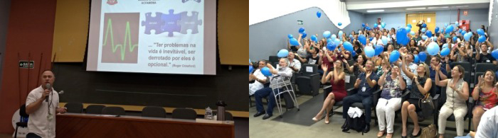 Ao final da apresentação foi realizada uma dinâmica elaborada e conduzida pelo funcionário Jurandir Gelmi Júnior, do Serviço de Verificação de Óbito do HCFAMEMA, com o tema “Vida – Missão, Visão e Valores”.