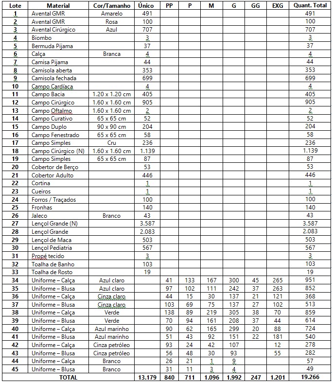 Os itens podem ser adquiridos de forma individual, de acordo com a necessidade do interessado. Abaixo, o HCFAMEMA divulga os itens para disponibilização.
