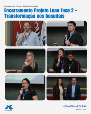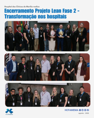 O HCFAMEMA concluiu, no dia 20 de agosto de 2025, a Fase 2 do Projeto Lean – Transformação nos Hospitais. A iniciativa teve início em setembro de 2024, com o Fórum de Abertura do Ciclo 5, realizado em 05/09/2024, seguido pelo Diagnóstico de Demanda e Capacidade (DDC), nos dias 25 e 26/09/2024. Nessa etapa inicial foram levantados indicadores institucionais, realizada uma análise preliminar e feita uma avaliação dos processos de trabalho em conjunto com a equipe de gestão.