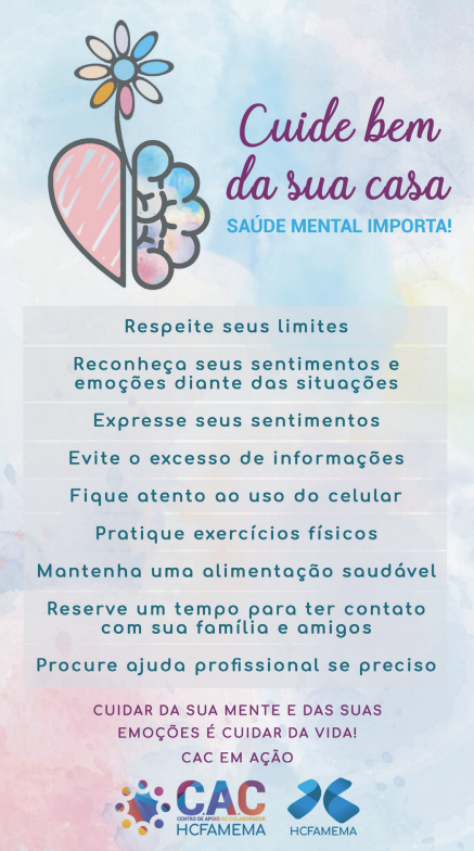 O Centro de Atendimento ao Colaborador (CAC) do HCFAMEMA iniciou campanha “Setembro Amarelo”, que traz a conscientização sobre o suicídio. As abordagens contam com um painel ilustrativo e entrega de mensagens, conforme o cronograma abaixo:
