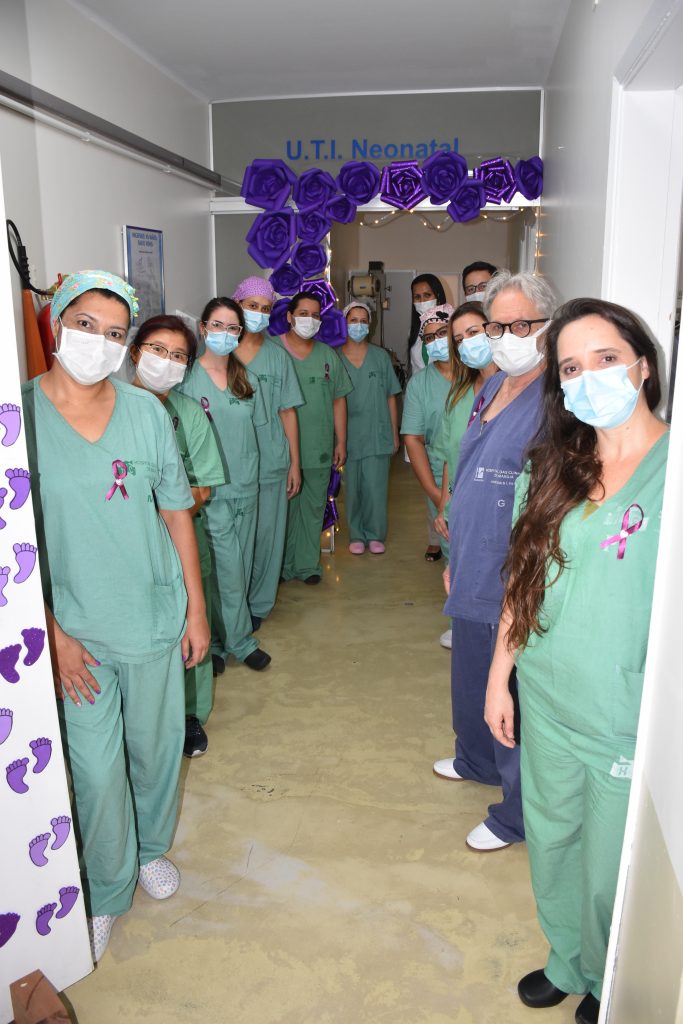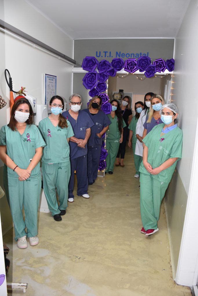 A equipe da UTI Neonatal (Unidade de Terapia Intensiva) do Hospital Materno Infantil de Marília, coordenada pelo Departamento de Atenção à Saúde Materno Infantil (DASMI) do Hospital das Clínicas da Faculdade de Medicina de Marília – HCFAMEMA, realizou na quarta-feira, dia 18 de Novembro, uma ação em prol da campanha Novembro Roxo, que busca conscientizar e prevenir a população sobre os partos prematuros. Os familiares e bebês internados na unidade receberam uma homenagem especial durante o horário de visita.
