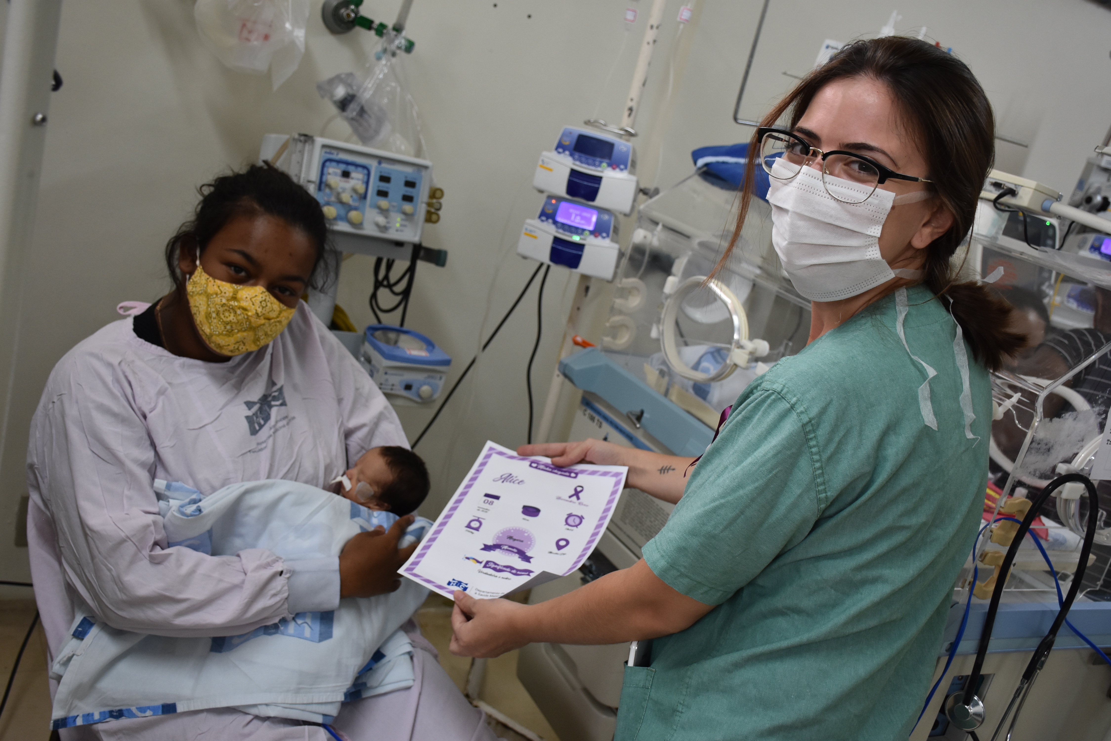 A equipe da UTI Neonatal (Unidade de Terapia Intensiva) do Hospital Materno Infantil de Marília, coordenada pelo Departamento de Atenção à Saúde Materno Infantil (DASMI) do Hospital das Clínicas da Faculdade de Medicina de Marília – HCFAMEMA, realizou na quarta-feira, dia 18 de Novembro, uma ação em prol da campanha Novembro Roxo, que busca conscientizar e prevenir a população sobre os partos prematuros. Os familiares e bebês internados na unidade receberam uma homenagem especial durante o horário de visita.
