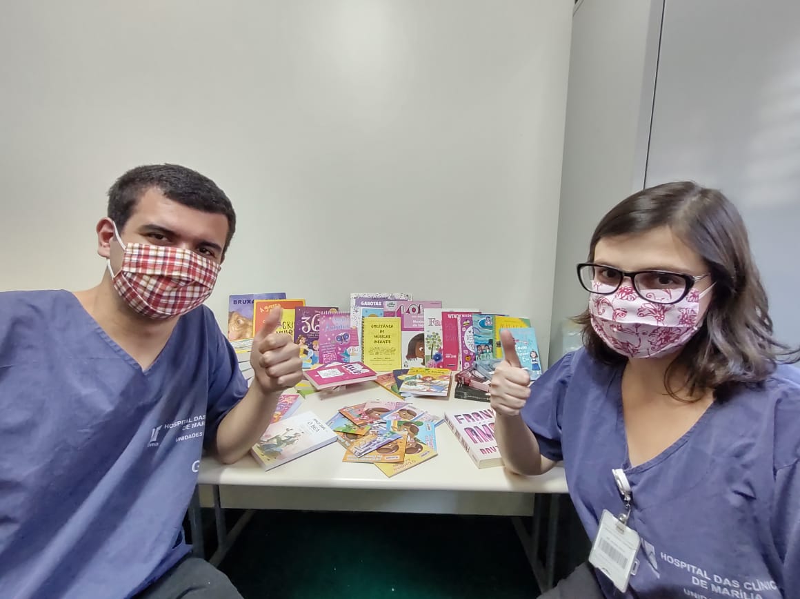 A diretoria técnica do Departamento de Atenção à Saúde Materno Infantil (DASMI) do Hospital das Clínicas da Faculdade de Medicina de Marília – HCFAMEMA agradece o novo ato de generosidade dos médicos da Instituição, o Dr. Fábio Hissachi Tsuji, urologista, e a Dra. Luciana Cavallari Tsuji, oncologista. Eles doaram vários livros infantis para o acervo de apoio aos processos do cuidado da equipe multidisciplinar que atende crianças e adolescentes internados no hospital.