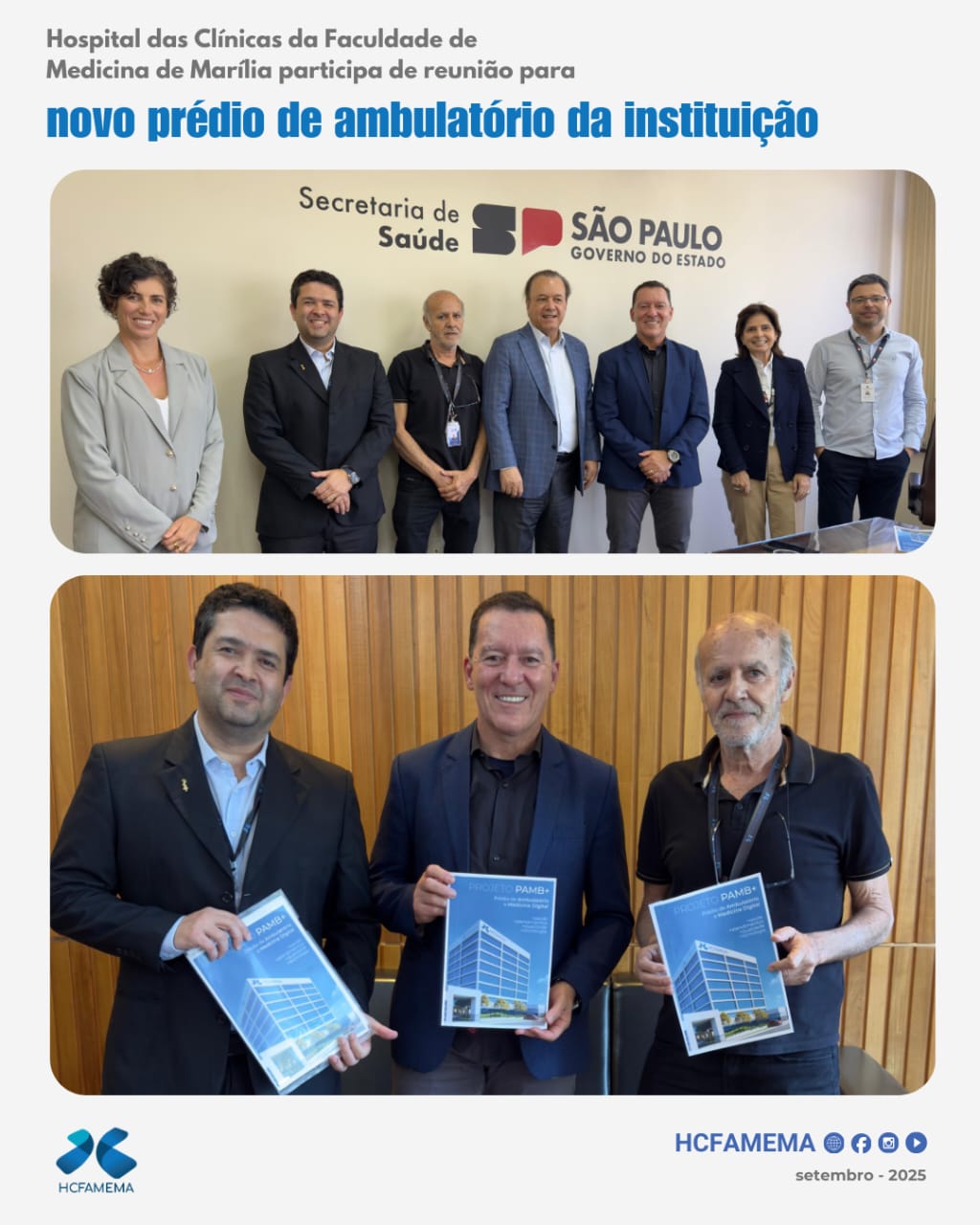 O Hospital das Clínicas da Faculdade de Medicina de Marília (HCFAMEMA) esteve presente na sede da Secretaria Estadual de Saúde de São Paulo (SES/SP) hoje, 29 de setembro de 2025, para uma reunião sobre o Prédio Ambulatório e Medicina Digital…