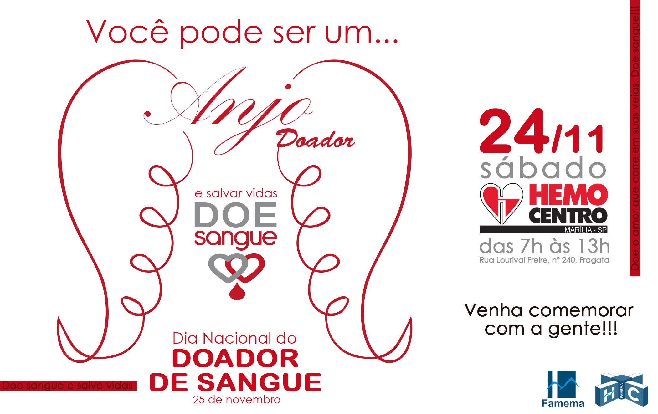 O Dia Nacional do Doador Voluntário de Sangue será comemorado no próximo domingo, dia 25 de novembro. No Hemocentro do HCFAMEMA, a data será celebrada no sábado, dia 24, com café da manhã e homenagens aos doadores. “A data…