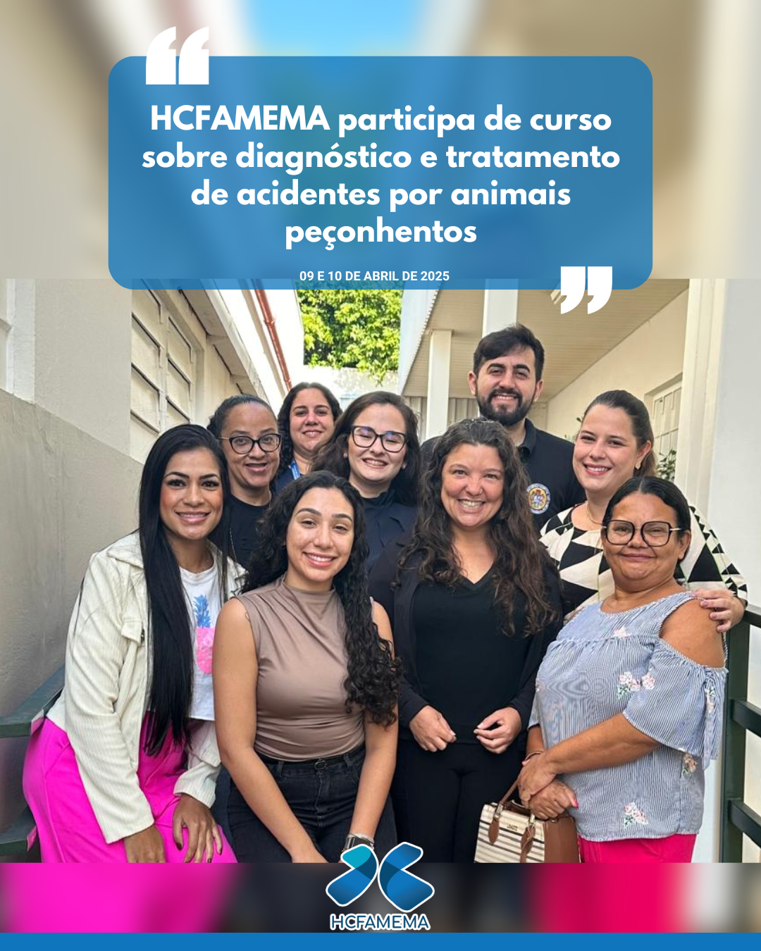 Nos dias 9 e 10 de abril de 2025, o HCFAMEMA esteve presente no “Curso de Aperfeiçoamento para Médicos e Enfermeiros Sobre Diagnóstico e Tratamento de Acidentes por Animais Peçonhentos”, organizado pela Divisão de Doenças Transmitidas por Vetores e Zoonoses,…