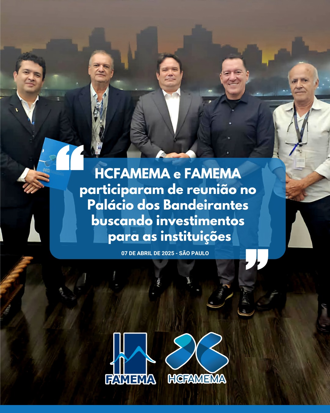 Nesta segunda-feira, 7 de abril de 2025, o Hospital das Clínicas da Faculdade de Medicina de Marília (HCFAMEMA) e a Faculdade de Medicina de Marília (FAMEMA), participaram junto com o Deputado Federal Vinicius Carvalho, de uma reunião com o Secretário-Chefe…