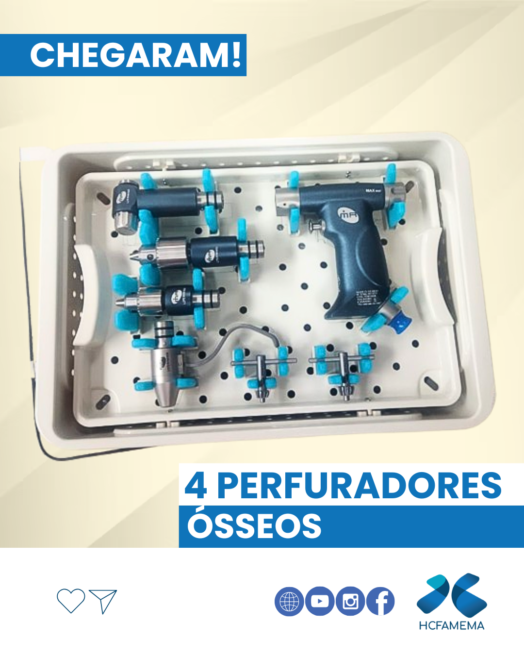 Chegaram 4 perfuradores ósseos para atender os pacientes do HCFAMEMA! Os perfuradores ósseos permitem que os cirurgiões realizem perfurações precisas durante os procedimentos.