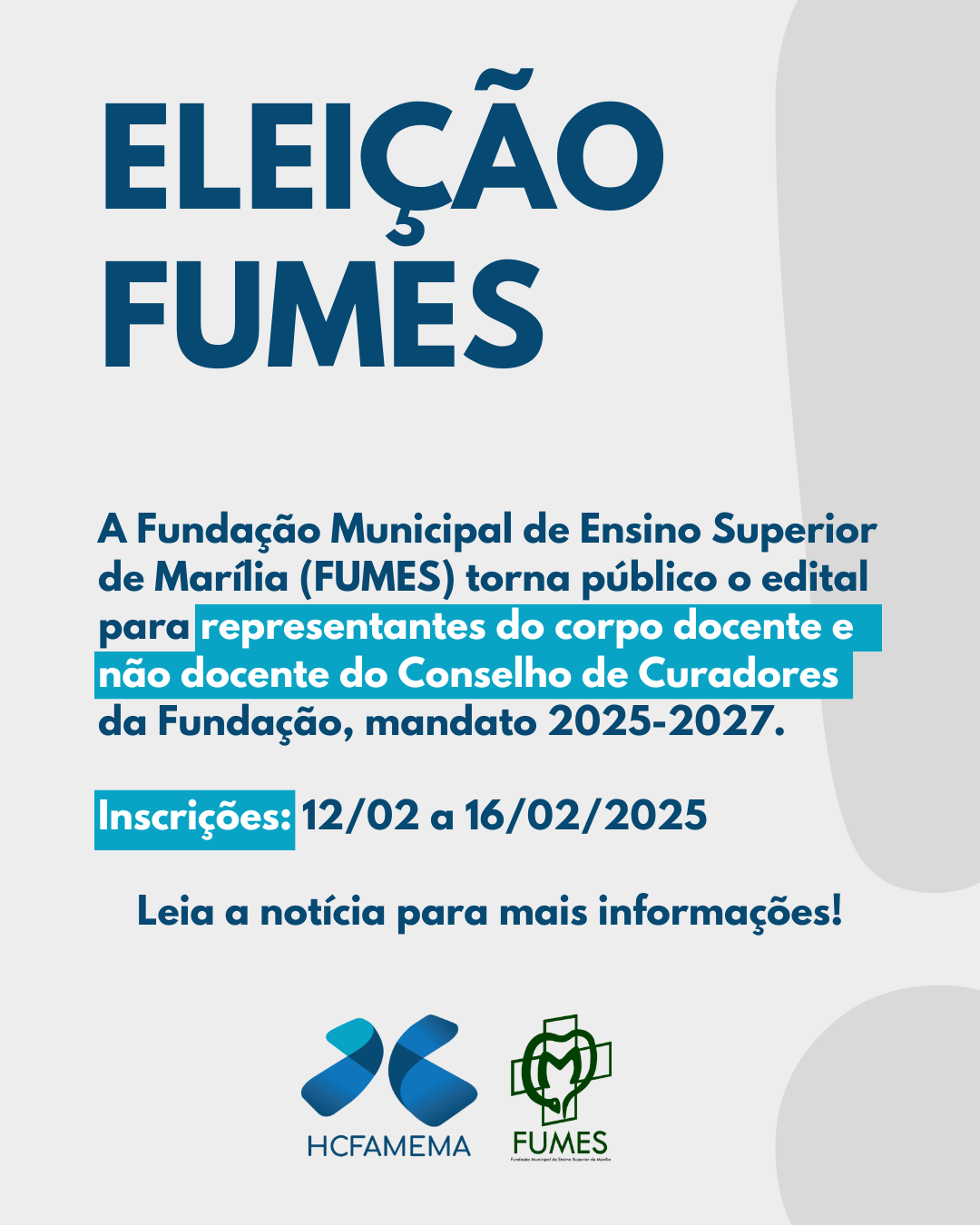 A eleição para a escolha do Diretor Geral e Vice-Diretor da FAMEMA (Faculdade de Medicina de Marília), gestão 2025/2029 será realizada no dia 02 de abril de 2025, das 8h às 16 horas, ininterruptamente. A deliberação da Congregação da FAMEMA…