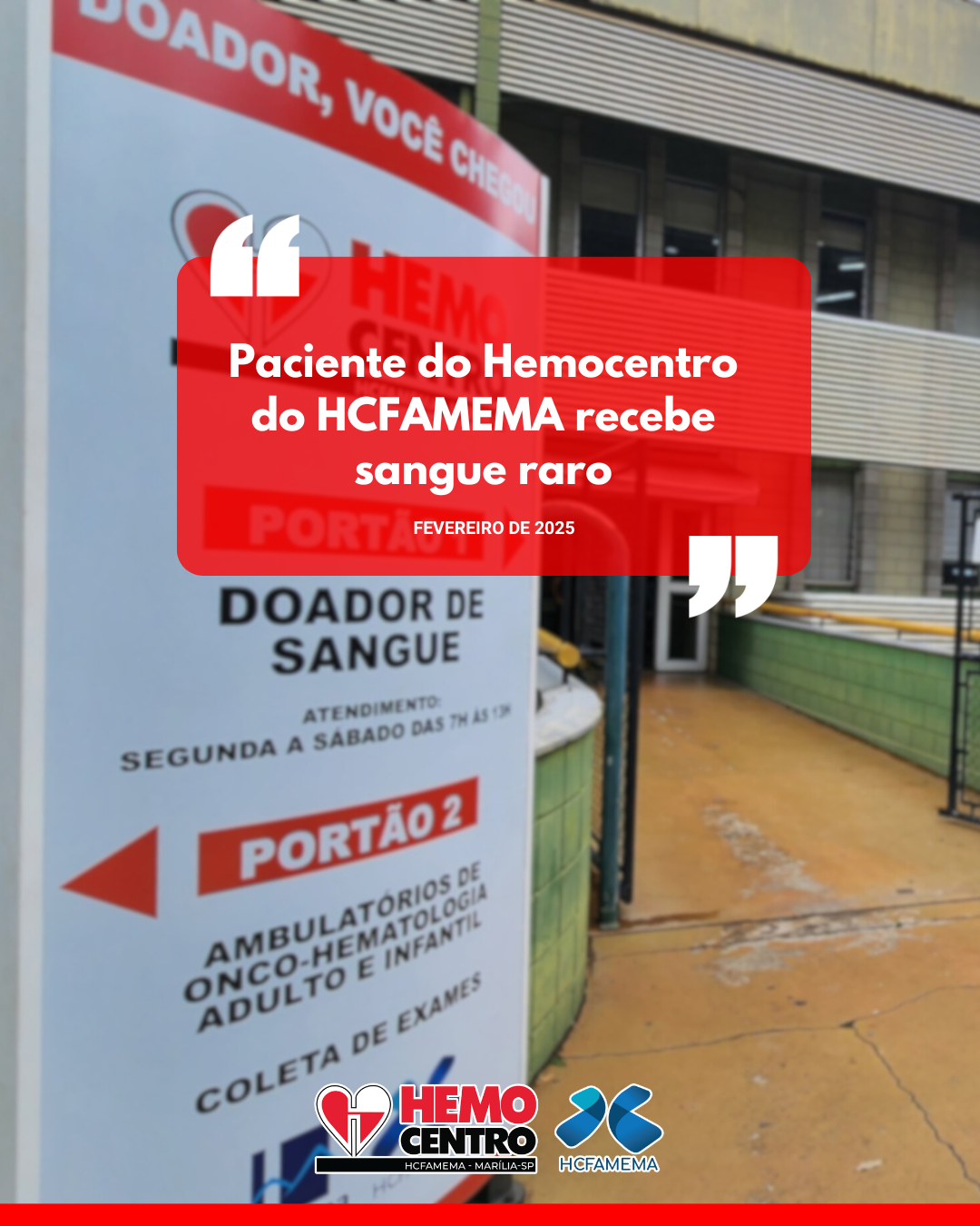 Paciente de 07 anos do Hemocentro do HCFAMEMA, com crise falcemica e pneumonia, necessitou a transfusão de três bolsas de sangue tipo O+ U-. Graças ao Projeto de Sangue Raro, do Ministério da Saúde, ao qual o Hemocentro faz parte,…