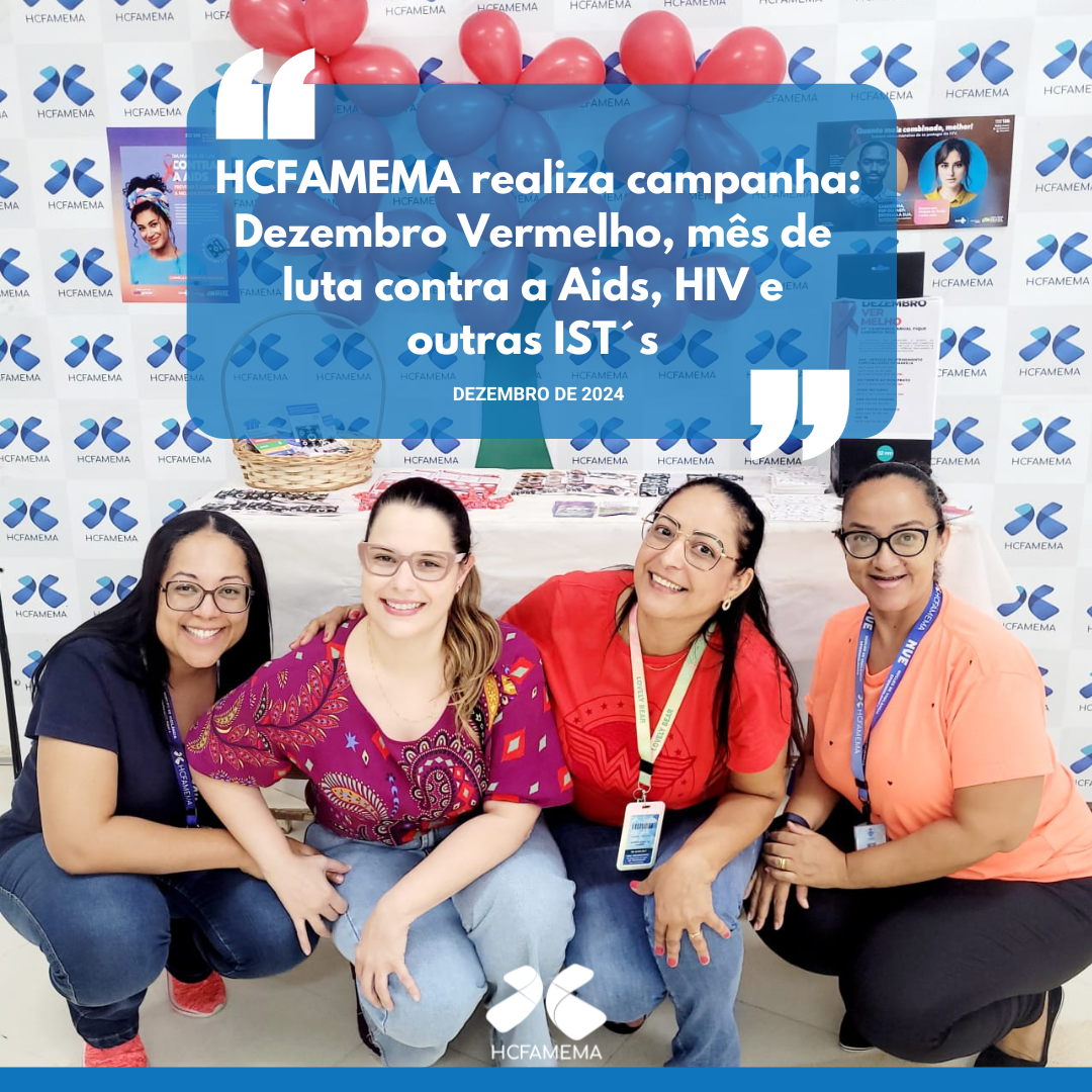 A equipe de vigilância epidemiológica do HCFAMEMA organizou, para o último mês do ano, ações que visam conscientizar sobre a campanha Dezembro Vermelho, voltada à conscientização sobre o diagnóstico precoce, tratamento e meios de prevenção do HIV, AIDS e outras…