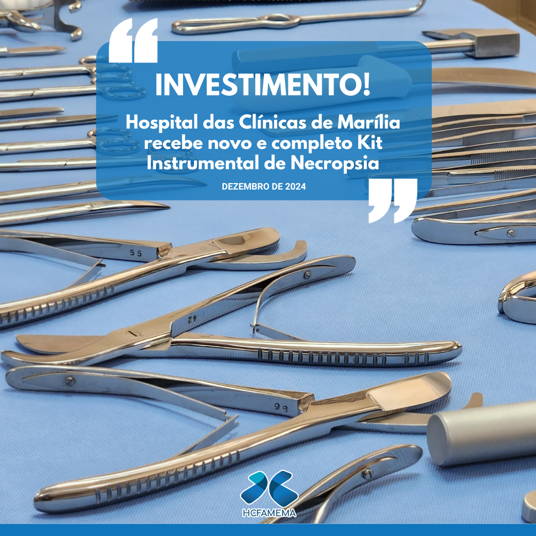 O Hospital das Clínicas de Marília acaba de receber nesta segunda-feira, dia 23 de dezembro, um novo e completo Kit de Instrumentais de Necropsia para utilização nos procedimentos realizadas no SVO – Serviço de Verificação de Óbito. Este material contribuirá…