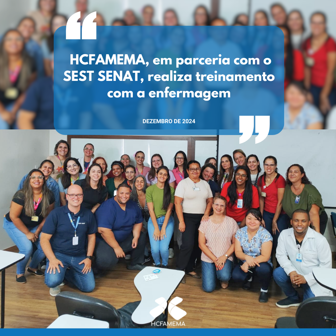 O HCFAMEMA, em parceria com o SEST SENAT, realizou, no dia 05 de dezembro de 2024, um treinamento voltado para os colaboradores e gestores da área de Enfermagem da instituição, com o objetivo de reforçar a importância da conexão entre…