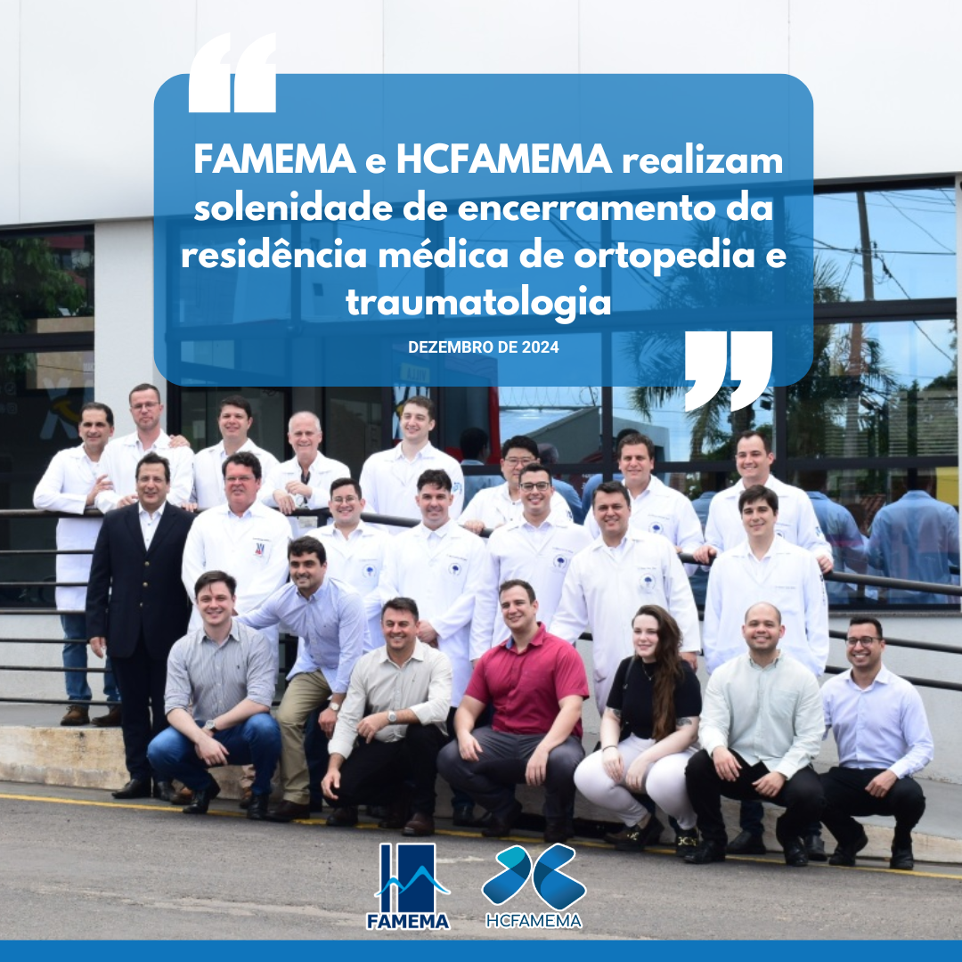A FAMEMA (Faculdade de Medicina de Marília) e o HCFAMEMA realizaram no sábado, dia 07 de dezembro, a solenidade de encerramento da 32ª turma de Residência Médica, especialidade de Ortopedia e Traumatologia. A solenidade ocorreu no Auditório Dr. Mário Alberto…