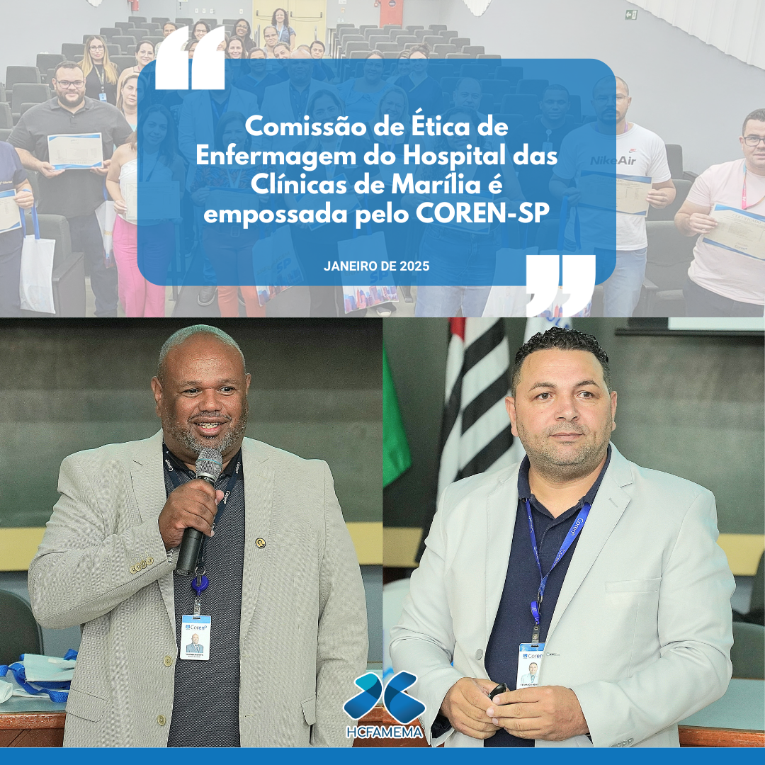Na manhã de 07 de janeiro de 2025, a Comissão de Ética de Enfermagem do Hospital das Clínicas de Marília foi empossada pelo Primeiro Secretário do Conselho Regional de Enfermagem de São Paulo (COREN-SP), Wagner Batista e Fernando Vieira Santos,…