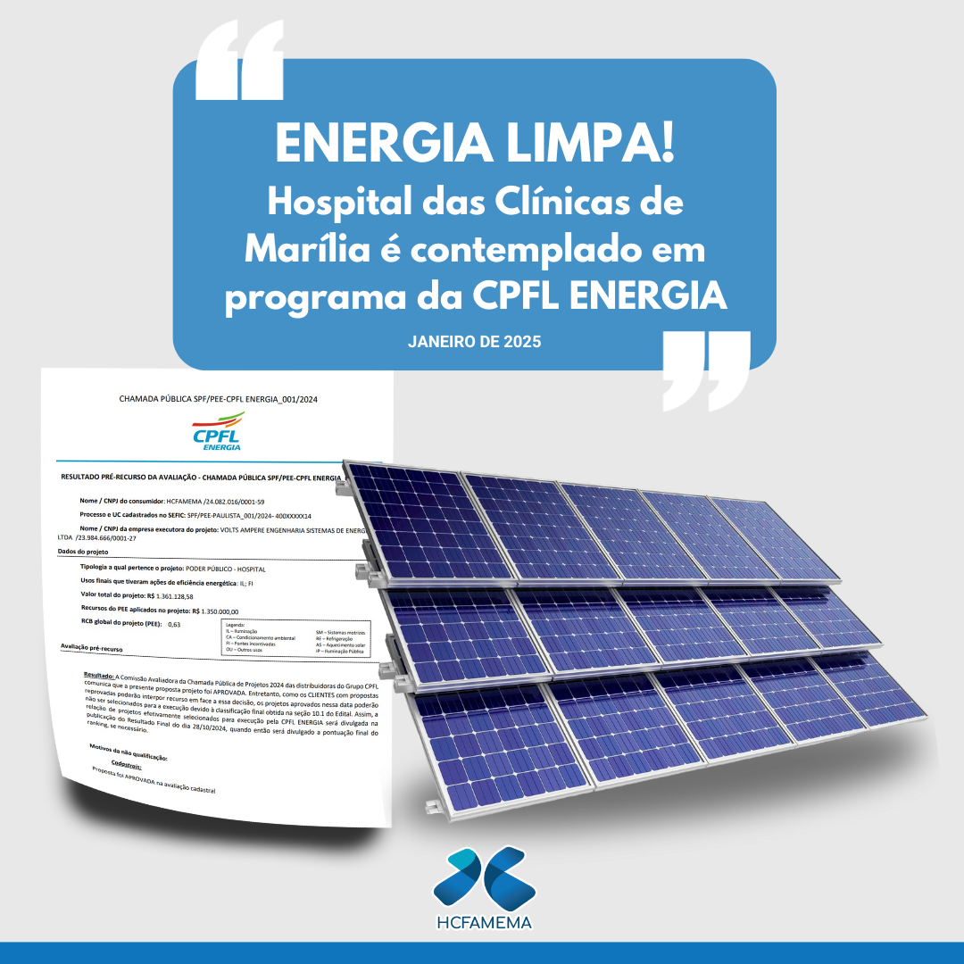 O Hospital das Clínicas de Marília foi contemplado no Programa de Eficiência Energética (PEE), da CPFL ENERGIA, regulamentado pela Agência Nacional de Energia Elétrica (ANEEL). O Programa visa promover o uso eficiente da energia elétrica, reduzindo desperdícios e envolvendo diversos…