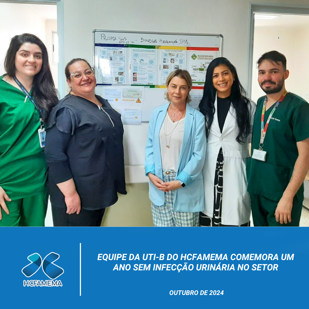 A equipe da Unidade de Tratamento Intensivo B (UTI-B) do HCFAMEMA comemorou um ano sem a ocorrência de infecção urinária associada ao cateter vesical de demora (sonda urinária). O marco é resultado da continuidade do trabalho de manter as infecções…