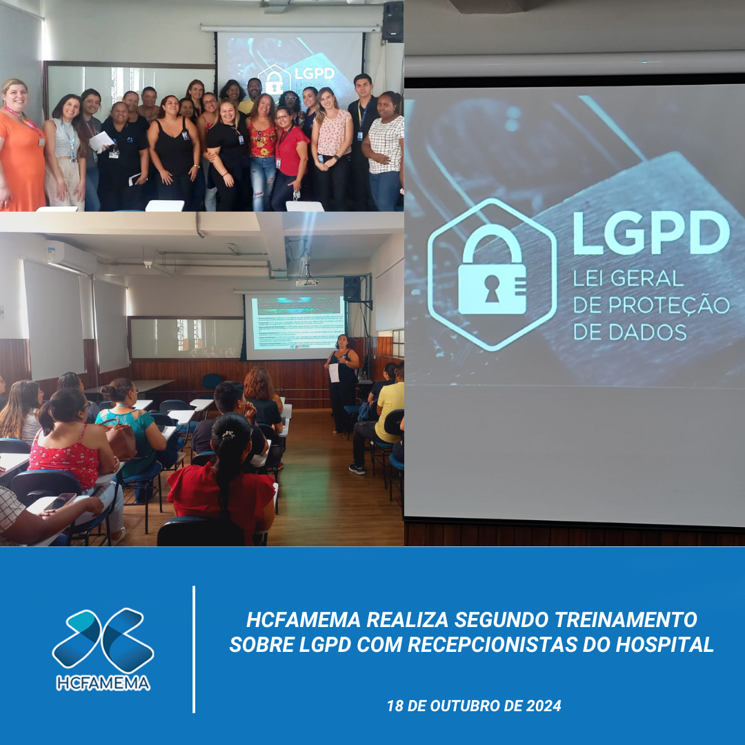 O Núcleo de Ingresso do Departamento de Gestão de Pessoas do HCFAMEMA realizou, no dia 11 de outubro de 2024, treinamento com seus colaboradores das recepções sobre a Lei Geral de Proteção de Dados. O foco da ação foi explicar…